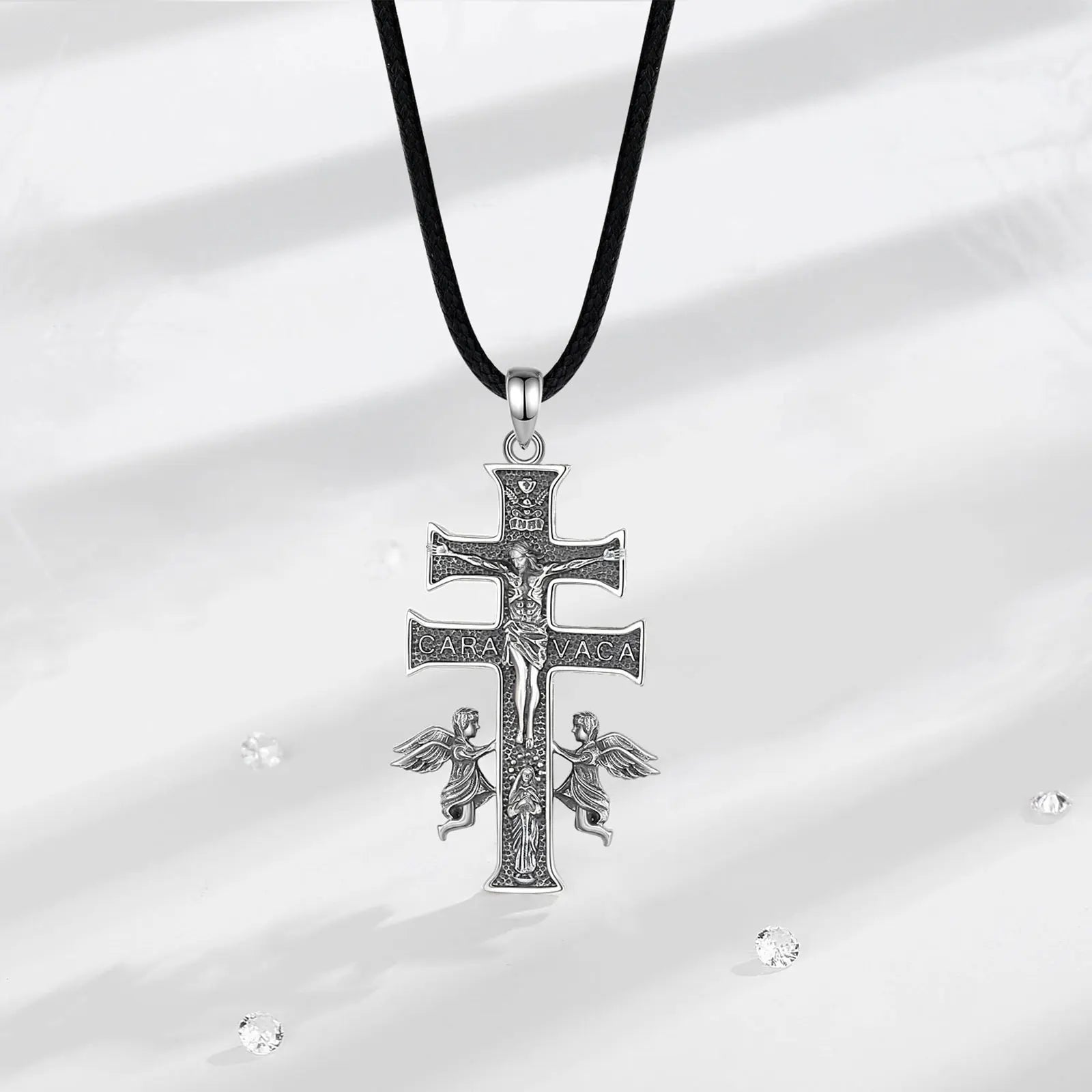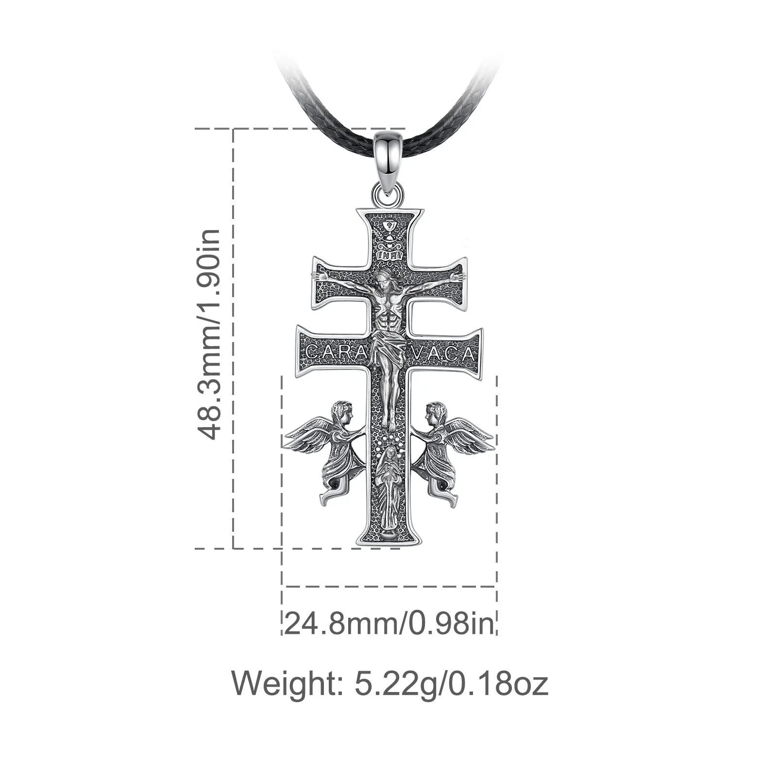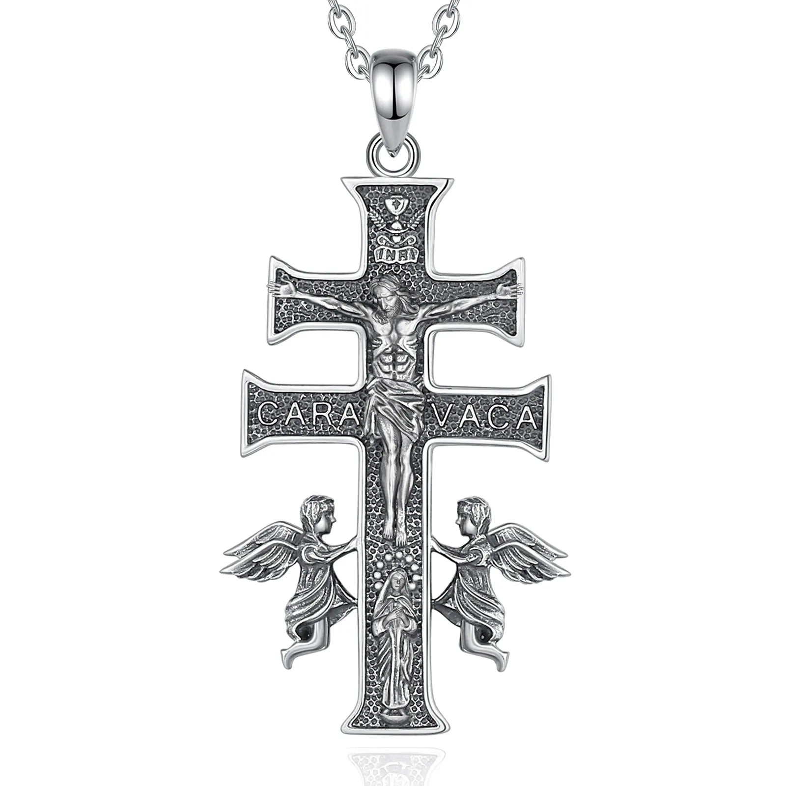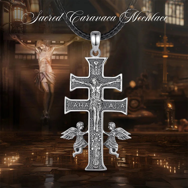 Collier Croix Caravaca en Argent Sterling 925 Eudora – Pendentif Amulette Vintage Jésus et Ange | Bijou religieux pour homme
