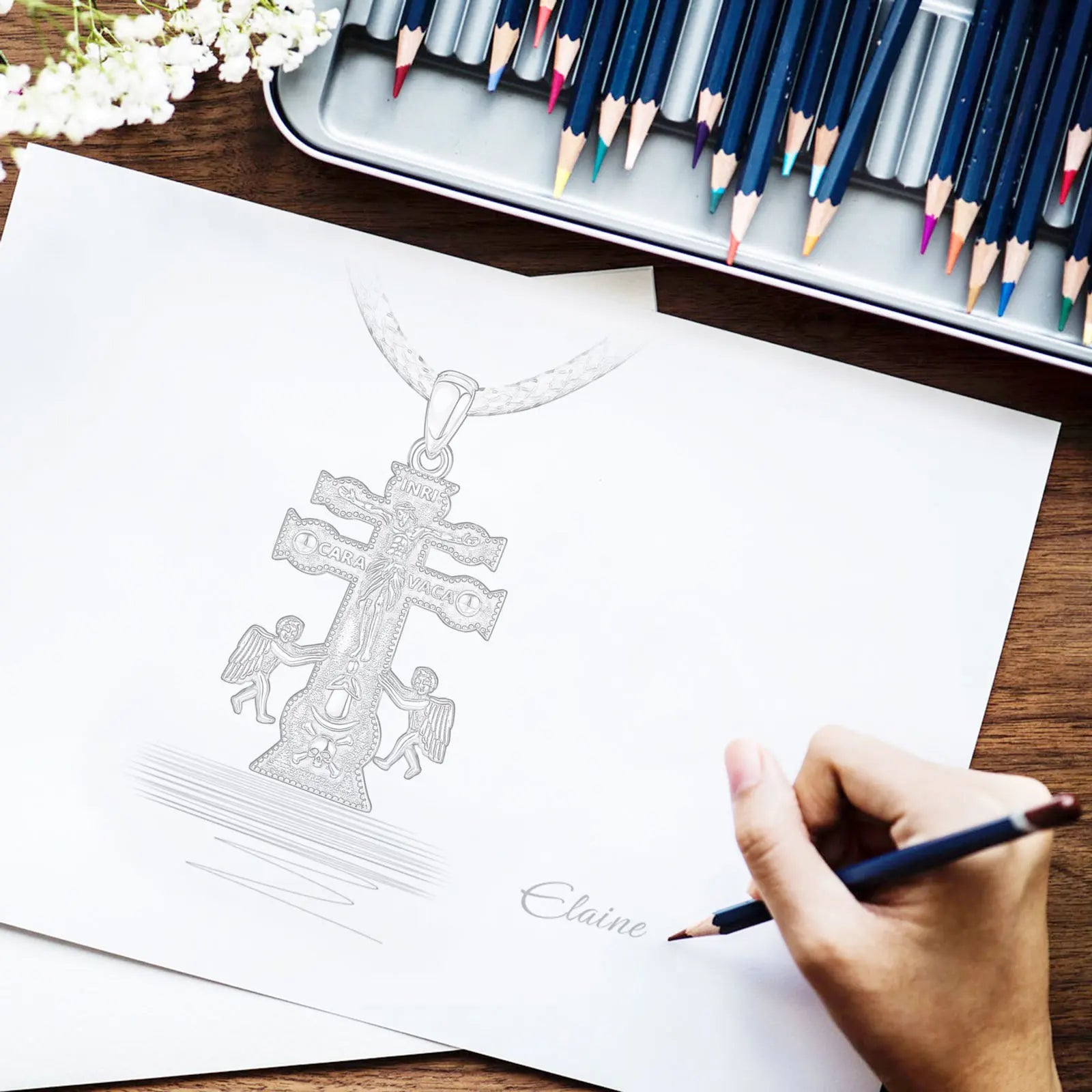 - Caravaca Cross: With origins in Caravaca de la Cruz, Spain, this double-barred cross has been revered since the 13th century for its miraculous legends and protective powers. Worn by believers for centuries, it is a powerful symbol of blessing, healing, and unwavering faith.