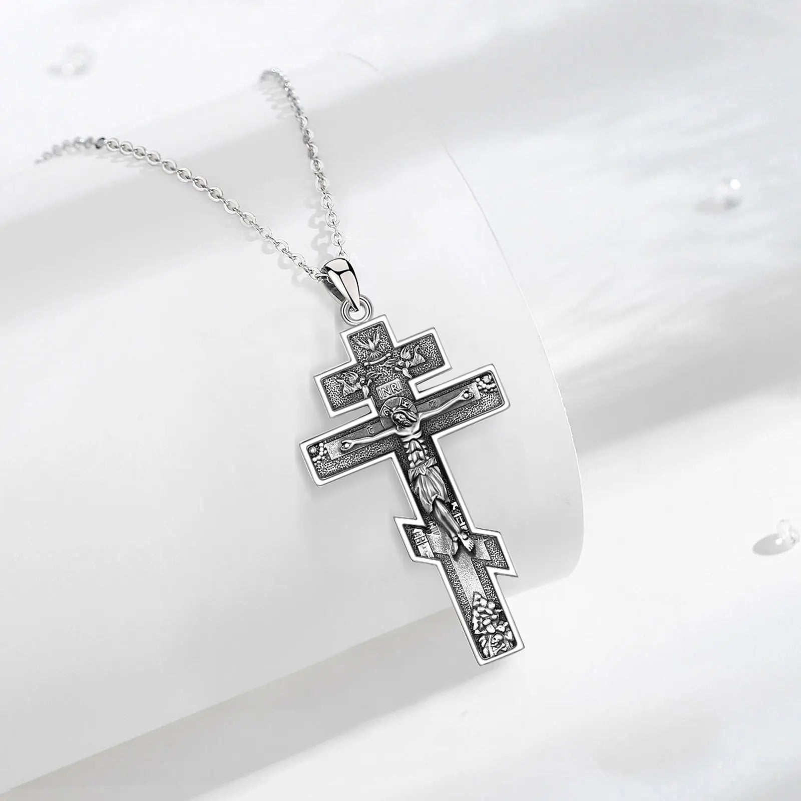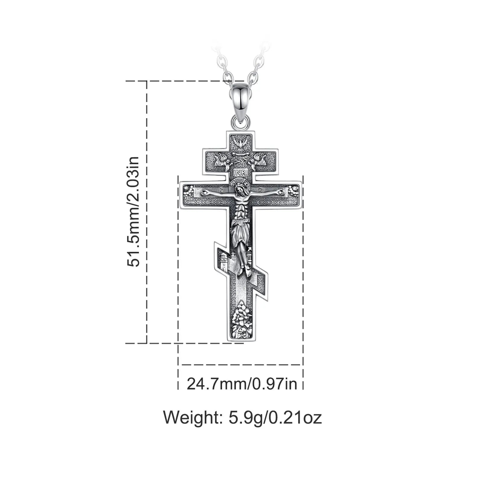 Eudora New 925 Sterling Silver Jesus Orthodox Cross Necklace – Cross Amulet Pendant | Christian Religious Jewelry Gift for Men